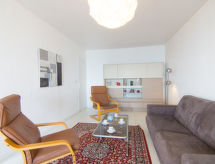Residenz "De La Plage", auf 4 Stockwerken. Im Ortsteil Le Môle, 50 m vom Meer, 50 m vom Strand, direkter Zugang zum Strand. In der Anlage: Fahrstuhl. Einkaufsgeschäft, Restaurant, Bar 100 m. Golfplatz (27 Loch) 2.5 km, Tennis 2 km. Bitte beachten: Das Foto ist nur ein Hausbeispiel. In diesem Haus sind weitere Ferienwohnungen mietbar. Surfen oder nicht Surfen ist hier keine Frage. Man muss es einfach versucht haben. Vor Ort bietet sich die Gelegenheit dazu. Es stehen Tennisplätze zur Verfügung. So können Tennisbegeisterte können in allen Levels trainieren.Interior