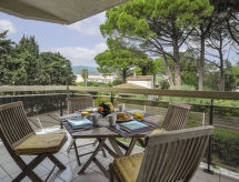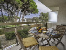 1-Zimmer-Studio 40 m2 im 1. Stock. Einfach und zweckmässig eingerichtet: Wohn-/Esszimmer mit 1 Diwanbett (140 cm, Länge 190 cm), TV, Radio, DVD und Klimaanlage. Ausgang zum Balkon. Kabine, ohne Fenster mit 1 franz. Bett (140 cm, Länge 190 cm). Offene Küche (Backofen, 2 Glaskeramikherd Platten, Toaster, Wasserkocher, Mikrowelle, Tiefkühler, elektrische Kaffeemaschine, Kapseln für die Kaffeemaschine (Nespresso) extra). Ausgang zum Balkon. Dusche, sep. WC. E-Heizung, Klimaanlage. Kleiner Balkon 6 m2. Balkonmöbel. Eingeschränkte Sicht auf das Meer, den Garten und die Landschaft. Zur Verfügung: Waschmaschine, Bügeleisen, Haartrockner. Internet (Wireless LAN, gratis). Bitte beachten: Maximal 1 Haustier/Hund erlaubt. Rauchmelder. Residenz. Frisch geduscht und duftend kann man entspannt zum Ferienprogramm übergehen, denn eine Dusche ist vorhanden. Es hat ein Babybett. Es gibt ein DVD Spieler.- Charakteristik des Mietobjekts
