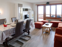 "Derborence 28", 2-Zimmer-Wohnung 56 m2, im Erdgeschoss. Objekt geeignet für 2 Erwachsene + 2 Kinder. Hell, renoviert, zweckmässig und schön eingerichtet: Wohn-/Esszimmer mit Kabel-TV. Ausgang zum Balkon, Richtung Norden. 1 Zimmer mit 1 x 2 Etagenbetten (90 cm, Länge 190 cm), 1 Doppelbett (2 x 90 cm, Länge 190 cm). Ausgang zum Balkon, Richtung Süden. Offene Küche (Backofen, Geschirrspüler, 2 Glaskeramikherd Platten, Mikrowelle, elektrische Kaffeemaschine, Kapseln für die Kaffeemaschine (nespresso) extra, Racletteofen, Fondue Set (Chinoise, Käse)). Bad/Dusche/WC. Balkon, Nordlage Balkon, Südlage. Balkonmöbel. Zur Verfügung: Haartrockner. Internet (Wireless LAN, gratis). Parkplatz Nr. 1 (überdacht), Höhe 190 cm. Bitte beachten: Nichtraucher-Unterkunft. 1 Haustier/Hund erlaubt. Residenz. Es hat ein Geschirrspüler. Es hat ein überdachter Parkplatz. Bei der im Haus befindlichen Sauna kommt Ihr Stoffwechsel bei der Hitze auf Trab. Es hat ein Innenpool. Ein Internetanschluss ist verfügbar.- Charakteristik des Mietobjekts