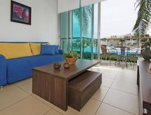 2-Zimmer-Wohnung für 2 Personen, 50 m2, modern eingerichtet. Wohn-/Esszimmer mit Regional-TV und DVD. Rauchen nicht erlaubt. Internet (Wireless LAN [WLAN]). 1 Diwanbett. Schlafzimmer mit 1 Doppelbett. Küche mit 4 - Platten Herd, Mikrowelle, Backofen, Esstisch, Geschirrspüler, Kühlschrank und Tiefkühler. Dusche/WC. Balkon, Terrassenmöbel. Weitere Ausstattung: Safe, Haartrockner, Bügeleisen, Waschmaschine. Es gibt ein DVD Spieler.- Charakteristik des Mietobjekts