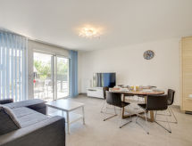 "Domaine des Augustins, appartement A02", 3-Zimmer-Wohnung 65 m2, im Erdgeschoss. Geräumig und hell, modern und geschmackvoll eingerichtet: grosses Wohn-/Esszimmer mit 1 Doppeldiwanbett (1 x 140 cm, Länge 190 cm), TV (Flachbildschirm). Ausgang zur Terrasse. 1 Zimmer mit 1 franz. Bett (1 x 160 cm, Länge 200 cm). Ausgang zum Garten. 1 Zimmer mit 1 franz. Bett (1 x 160 cm, Länge 200 cm). Offene Küche (Geschirrspüler, 4 Induktionskochplatten, Mikrowelle, Tiefkühler, elektrische Kaffeemaschine, Dampfgarer). Bad, sep. WC. G-Heizung. Terrasse, kleiner Gartensitzplatz. Terrassenmöbel. Zur Verfügung: Waschmaschine, Wäschetrockner. Internet (Wireless LAN, gratis). Parkplatz Nr. 8. Bitte beachten: geeignet für Familien. Rauchmelder. 35288000693C2 Residenz. Eine Badewanne ist verfügbar. Dank der Waschmaschine die Sie vorfinden, sind weniger Kleider zum mitschleppen.- Charakteristik des Mietobjekts