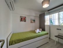 "Dona I", 3-Zimmer-Wohnung 63 m2 im 5. Stock. Objekt geeignet für 4 Erwachsene. Geräumig und hell, vollständig renoviert im Jahre 2022, komfortabel und modern eingerichtet: Wohn-/Esszimmer 21 m2 mit Digital-TV und Klimaanlage. Ausgang zur Terrasse. 1 Zimmer 9 m2 mit 1 franz. Bett (140 cm, Länge 200 cm), Dusche/WC und Klimaanlage. 1 Zimmer 6 m2 mit 1 Bett (90 cm, Länge 200 cm), Klimaanlage. 1 Zimmer 7 m2 mit 1 x 2 Etagenbetten (90 cm, Länge 200 cm), Klimaanlage. Kochnische (2 Induktionskochplatten, Toaster, Wasserkocher, Mikrowelle, Tiefkühler, elektrische Kaffeemaschine). Dusche/WC. Klimaanlage. Terrasse 13 m2. Sicht auf die Ortschaft. Zur Verfügung: Waschmaschine, Bügeleisen, Haartrockner. Internet (Wireless LAN, gratis). Parkplatz Nr. S/N. VT-323725-BM Sie gelangen mit dem Aufzug zur Etage der Wohnung.- Ausstattung