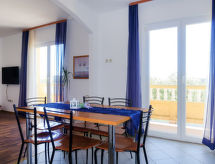 Dreifamilienhaus "Dora", auf 3 Stockwerken, umgeben von Bäumen. Im Ort, 1.5 km vom Zentrum von Barbat, 6 km vom Zentrum von Rab, 17 km vom Zentrum von Lopar, in einem Wohnquartier, 200 m vom Meer. Zur Mitbenutzung: Grundstück 1'300 m2, Garten mit Rasen und Bäumen. Terrasse (70 m2), Gartenmöbel, Grill. Im Hause: Aufenthaltsraum mit TV, Internetzugang, Waschmaschine (extra) (zur Mitbenutzung). Einkaufsgeschäft 100 m, Kieselstrand 200 m. Bitte beachten: private Bootsanlegestelle (extra) auf Anfrage. Die Region ist ein beliebtes Reiseziel für ein vergnügendes Segelerlebniss.Interior