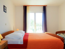 "Dora (RAB142)", 3-Zimmer-Wohnung 80 m2 im 1. Stock. Hell, zweckmässig eingerichtet: Wohn-/Esszimmer mit Sat-TV. Ausgang zum Balkon. 2 Zimmer, jedes Zimmer mit 1 Bett, 1 Doppelbett und Dusche/WC. Ausgang zum Balkon. (5 Kochplatten, Backofen, elektrische Kaffeemaschine). Dusche/WC. 3 Balkone. Balkonmöbel. Parkplatz (2 Autos) beim Haus. Bitte beachten: Nichtraucher-Unterkunft. Maximal 1 Haustier/Hund erlaubt. Lehnen Sie sich zurück, schon beginnt das Feriengefühl im dazugehörigen Garten.- Ausstattung
