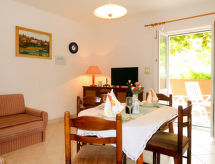 "Dorka (RAB302)", 2-Zimmer-Wohnung 39 m2, im ebenerdigen Untergeschoss. Wohn-/Schlafzimmer mit 1 Diwanbett (80 cm, Länge 195 cm), Esstisch und Sat-TV. Ausgang zur Terrasse. 1 Zimmer mit 1 Doppelbett (2 x 80 cm, Länge 200 cm). Offene Küche (2 Kochplatten, Backofen, Toaster, Wasserkocher, Tiefkühler, elektrische Kaffeemaschine). Dusche/WC. Terrasse. Terrassenmöbel. Zur Verfügung: Internet (Wireless LAN, gratis). Bitte beachten: Nichtraucher-Haus. Maximal 1 Haustier/Hund erlaubt. Eine Terrasse ist verfügbar. Geeignet für ein Barbecue.- Ausstattung