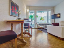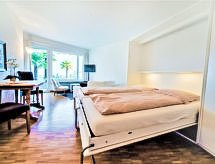Ascona: Modernes Haus. Oberhalb von Ascona, im Ort, 400 m vom Zentrum, im Bezirk Lago Maggiore, ruhige Lage am Hang, 400 m vom See. Im Hause: Fahrstuhl. Brötchenservice. Parkplatz (beschränkte Anzahl, extra) auf dem Grundstück, Gemeinschaftsgarage (extra). Einkaufsgeschäft, Restaurant 400 m, Bahnstation "Locarno-Muralto" 4 km, Strandbad 1 km. Golfplatz (18 Loch) 1 km, Tennis 1 km. Bitte beachten: geeignet für Familien, geeignet für Senioren. In diesem Haus sind weitere Ferienwohnungen mietbar. Ein öffentlicher Parkplatz ist über eine steile Treppe innert 5 Gehminuten erreichbar. Ein weiterer öffentlicher Parkplatz befindet sich im Zentrum. Minigolf 1 km. Hier finden Sie Ihren Tennispartner für das nächste Tennismatch. Plätze sind vorhanden.Interior