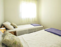 3-Zimmer-Wohnung 50 m2, im erhöhten Erdgeschoss, Südwestlage. Wohn-/Esszimmer 24 m2 mit Sat-TV und Klimaanlage. Ausgang zur Terrasse. 1 Zimmer mit 1 Doppelbett (2 x 80 cm, Länge 200 cm). 1 Zimmer mit 2 Betten (80 cm, Länge 200 cm). Offene Küche (2 Kochplatten, Mikrowelle, elektrische Kaffeemaschine) mit Klimaanlage. Dusche/WC. Terrasse 25 m2, überdacht. Terrassenmöbel. Zur Verfügung: Internet (Wireless LAN, gratis). Die Klimaanlage sorgt für eine gute Raumtemperierung. Denn der Wohlfühlfaktor spielt eine wichtige Rolle und ist uns wichtig.- Ausstattung