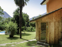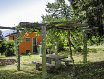 "Appartamento Vista Valle", 4-Zimmer-Wohnung 100 m2, Südlage. Geräumig und hell, teilweise abgeschrägt, renoviert im Jahre 2018, komfortabel und gemütlich eingerichtet: offenes grosses Wohn-/Esszimmer mit Kabel-TV und Radio. 1 Doppelzimmer mit 1 Doppelbett (1 x 180 cm, Länge 200 cm). Ausgang zum Balkon. 1 Doppelzimmer mit 1 Doppelbett (1 x 160 cm, Länge 200 cm). Ausgang zum Balkon. Grosse Wohnküche (Backofen, Geschirrspüler, 4 Induktionskochplatten, Toaster, Wasserkocher, Tiefkühler, elektrische Kaffeemaschine, Kapseln für die Kaffeemaschine (Dolce Gusto) extra, Racletteofen, Fondue Set (Käse)) mit offenem Kamin und Esstisch. Bad/WC. Fussbodenheizung. Obergeschoss: 1 abgeschrägtes Zimmer mit 2 Betten (90 cm, Länge 200 cm). Südlage, grosse Terrasse teilweise überdacht. Terrassenmöbel, Gartengrill (mobil), Sitzplatz. Schöne Panoramasicht auf die Berge, das Tal, den Garten und die Landschaft. Zur Verfügung: Kinderhochstuhl, Babybett bis 2 Jahre (extra), Haartrockner. Internet (Wireless LAN, gratis). Bitte beachten: Nichtraucher-Unterkunft. Maximal 3 Haustiere/Hunde erlaubt. Feuerlöscher. Es gibt ein Balkon. Es hat eine Veranda. Geeignet zum Grillen. Es hat ein Parkplatz. Es hat eine Sauna. Ein Wäschetrockner ist vorhanden. Ein Ofen ist verfügbar.- Ausstattung