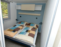 3-Zimmer-Mobilheim 24 m2. Objekt geeignet für 4 Erwachsene. Komfortabel und modern eingerichtet: 1 Doppelzimmer mit 1 franz. Bett (160 cm, Länge 200 cm). 1 Zimmer mit 2 Betten (80 cm, Länge 200 cm). Wohnküche (4 Induktionskochplatten, Mikrowelle, elektrische Kaffeemaschine, Racletteofen) mit 1 Schlafmöglichkeit (130 cm, Länge 190 cm), Esstisch, Sat-TV und Klimaanlage. Ausgang zur Terrasse. Dusche, sep. WC. E-Heizung, Klimaanlage. Terrasse 9 m2, überdacht. Terrassenmöbel, Elektrogrill (mobil), Liegestühle. Sicht auf die Berge und die Landschaft. Zur Verfügung: Internet (Wireless LAN, gratis). Bitte beachten: Nichtraucher-Unterkunft. Private Bootsanlegestelle (extra). 1 Haustier/Hund erlaubt. Rauchmelder. Bei Belegung mit weniger Personen als der maximalen Personenzahl stehen nicht alle Wohneinheiten zur Verfügung. Ein eindrucksvoller Kinderspielplatz befindet sich ebenfalls auf dem Anwesen. Auch wenn es in der Nacht noch so heiss bleibt, ist es schön, kann man die Klimaanlage einschalten und in einem angenehm temperierten Raumklima schlafen. Geeignet zum Grillen. Das Haus ist auch mit einem Wäschetrockner ausgestattet. Das Haus ist auch mit einem Tischtennistisch ausgestattet. Um auch mal was schnell selber zuzubereiten, steht ein Mikrowellenofen parat.- Ausstattung