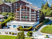 "Ecluses 11", 4-Zimmer-Wohnung 101 m2 im 3. Stock. Geräumig und hell, teilweise renoviert im Jahre 2015, komfortabel und geschmackvoll eingerichtet: grosses Wohn-/Esszimmer mit offenem Kamin und Kabel-TV. Ausgang zum Balkon. 1 Zimmer mit 2 Betten (90 cm, Länge 190 cm). Ausgang zum Balkon, Richtung Norden. 1 kleines Zimmer mit 1 Bett (90 cm, Länge 190 cm). Ausgang zum Balkon, Richtung Westen. 1 grosses Zimmer mit 3 Betten (90 cm, Länge 190 cm). Ausgang zum Balkon, Richtung Norden. Küche (Backofen, Geschirrspüler, 4 Glaskeramikherd Platten, elektrische Kaffeemaschine, Kapseln für die Kaffeemaschine (nespresso) extra, Racletteofen, Fondue Set (Käse)). Ausgang zum Balkon. Bad/Bidet/WC, sep. WC. Grosser Balkon 28 m2, Südlage und Westlage Balkon, Nordlage. Balkonmöbel. Sicht auf die Berge und die Ortschaft. Zur Verfügung: Internet (Wireless LAN, gratis). Garage Nr. 11, Höhe 270 cm, Breite 230 cm. Eine Badewanne ist vorhanden. Das Ferienobjekt verfügt über einen Personenaufzug. Es gibt ein Balkon. Es gibt eine Feuerstelle. Ein Innenpool ist verfügbar. Das Haus ist auch mit einem beheizten Pool ausgestattet.- Ausstattung