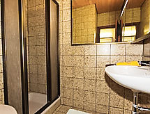 1-Zimmer-Studio 35 m2 im 3. Stock. Objekt geeignet für 2 Erwachsene + 1 Kind. Gemütlich eingerichtet: Wohn-/Schlafzimmer mit 1 Doppelwandklappbett und 1 Ausziehbett (1 Pers.), Esstisch und Sat-TV (Flachbildschirm). Ausgang zum Balkon. Kleine Kochnische im Eingang (2 Kochplatten). Dusche/WC. Balkon, Südlage. Balkonmöbel. Sehr schöne Panoramasicht auf die Berge und die Ortschaft. Bitte beachten: Nichtraucher-Unterkunft. Maximal 1 Haustier/Hund erlaubt. Rauchmelder, kein Fahrstuhl. Es hat ein Balkon.- Ausstattung