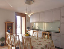 3-Zimmer-Wohnung 61 m2 im 2. Stock. Stilvoll und gemütlich eingerichtet: Wohn-/Esszimmer mit Kabel-TV, Radio, CD und DVD. 2 Zimmer, jedes Zimmer mit 2 Betten (90 cm, Länge 200 cm). Offene Küche (Backofen, Geschirrspüler, 4 Glaskeramikherd Platten, Toaster, Wasserkocher, Mikrowelle, elektrische Kaffeemaschine, Kapseln für die Kaffeemaschine (Nespresso) extra, Fondue Set (Käse)). Dusche/WC, Bad/Dusche/WC. Kleiner Balkon. Sehr schöne Panoramasicht auf die Berge. Zur Verfügung: Waschmaschine, Wäschetrockner, Bügeleisen, Haartrockner. Internet (Wireless LAN, gratis). Bitte beachten: Nichtraucher-Unterkunft. Es hat ein Balkon. Ein Wäschetrockner ist verfügbar. Das Haus ist auch mit einem DVD Spieler ausgestattet.- Ausstattung