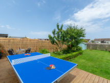 4-Zimmer-Haus. Komfortabel und geschmackvoll eingerichtet: Wohn-/Esszimmer mit Esstisch und TV (Flachbildschirm), DVD. Ausgang zum Garten. 1 Doppelzimmer mit 1 Doppelbett und Bad/Dusche/WC. 1 Doppelzimmer mit 1 Doppelbett. 1 Zimmer mit 2 Betten. Offene Küche (4 Kochplatten, Backofen, Geschirrspüler, Mikrowelle, Tiefkühler). Sep. WC, Bad/Dusche/WC. Heizung. Gartensitzplatz, Rasen. Terrassenmöbel, Wintergarten. Zur Verfügung: Waschmaschine, Haartrockner. Internet (Wireless LAN, gratis). Parkplatz. Bitte beachten: Nichtraucher-Haus. Eine Veranda ist verfügbar. Es gibt ein Parkplatz. Ein DVD Spieler ist vorhanden. Es hat ein Ofen.- Charakteristik des Mietobjekts