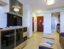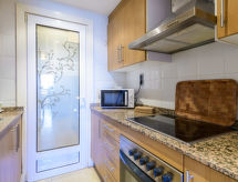 Marina d'Or: Komfortables Appartementhaus "El Cano". Im Ortszentrum von Marina d'Or, zentrale, sonnige Lage, direkt am Meer, direkt am Strand, Strasse zu überqueren. Zur Mitbenutzung: Schwimmbad (30 x 15 m, 145 - 190 cm tief, saisonale Verfügbarkeit: 01.Jun. - 15.Sep.). Kinderbecken, Aussendusche. Im Hause: Fahrstuhl. Öffentliche Parkplätze auf der Strasse. Lebensmittelgeschäft, Supermarkt 100 m, Restaurant, Bar, Café 50 m, Sandstrand 10 m. Jugendgruppen nur auf Anfrage. Die Nachbarschaft ist sehr lärmempfindlich. Ruhe und gutes Benehmen wird erwartet. Einfach mal wieder auf einer positiven Welle surfen? Der Ort lädt zum Wellenritt ein.Interior