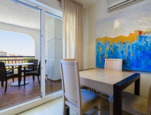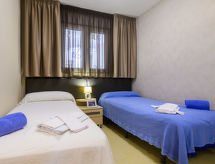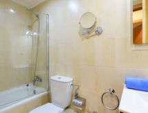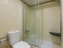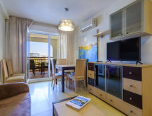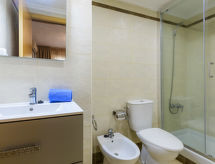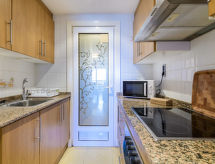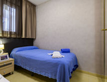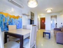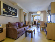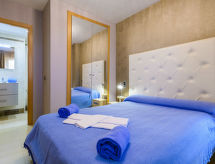 "El Cano - Paseo Maritimo", 3-Zimmer-Wohnung 65 m2 im 7. Stock. Zweckmässig und komfortabel eingerichtet: Wohn-/Esszimmer mit 1 Diwanbett, Esstisch, Digital-TV, Flachbildschirm, Klimaanlage und Warmluftheizung. Ausgang zur Terrasse. 1 Zimmer mit 1 franz. Bett (135 cm, Länge 190 cm), Bad/Bidet/WC. 1 Zimmer mit 2 Betten (90 cm, Länge 190 cm). Küche (Backofen, Toaster, Mikrowelle, Tiefkühler, elektrische Kaffeemaschine). Bad/Bidet/WC. E-Heizung. Terrasse. Terrassenmöbel. Schöne Sicht auf das Meer. Zur Verfügung: Waschmaschine, Bügeleisen, Haartrockner. Parkplatz Nr. 45 beim Haus. 1 kleines Haustier/Hund erlaubt. VT-15102-CS Badewanne im Haus. Objekt mit Aufzug. Gewährt spektakulärer Aussicht auf das Meer. Die drückende Hitze kann Körper und Gemüt stark belasten. Deshalb sind die Räumlichkeiten mit Klimaanlagen ausgestattet. Es gibt ein Kinderbecken. Informieren Sie sich im über den vorhandenen TV Apparat. Ob lokale Neuigkeiten oder internationale Nachrichten, mit dem Fernsehen sind sie stehts gut informiert. Ein Ofen ist verfügbar.- Ausstattung