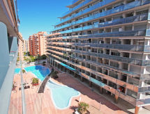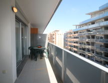"Elegance", 2-Zimmer-Wohnung 51 m2 im 5. Stock. Geräumig und hell, einfach und zweckmässig eingerichtet: Wohn-/Esszimmer 15 m2 mit Digital-TV und Ventilator. Ausgang zur Terrasse. 1 Zimmer 10 m2 mit 1 franz. Bett (135 cm, Länge 190 cm), Ventilator. Ausgang zur Terrasse. Offene Küche (Backofen, 4 Glaskeramikherd Platten, Toaster, Wasserkocher, Mikrowelle, Tiefkühler, elektrische Kaffeemaschine). Bad/Bidet/WC. E-Heizung. Terrasse 6 m2. Terrassenmöbel. Sicht auf das Schwimmbad. Zur Verfügung: Waschmaschine, Bügeleisen, Haartrockner. Parkplatz Nr. 131 (-2). 1 Haustier/Hund erlaubt. AT-437720-A Es gibt eine Terrasse. Das Haus ist auch mit einem Parkplatz ausgestattet. Das Haus ist auch mit einem überdachten Parkplatz ausgestattet. Ein Kinderbecken ist vorhanden. Das Haus ist auch mit einem Tischtennistisch ausgestattet. Zur Verfügung steht ein Mikrowellengerät.- Ausstattung