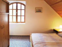 4-Zimmer-Doppelhaushälfte 70 m2 auf 2 Stockwerken. Hell, zweckmässig eingerichtet: Wohn-/Schlafzimmer mit 1 Diwanbett, Esstisch und Sat-TV. Ausgang zur Terrasse. Kochnische (2 Kochplatten, Toaster, Wasserkocher, Mikrowelle, Tiefkühler, elektrische Kaffeemaschine). Dusche/WC. Obergeschoss: (geländerlose Treppe) 2 abgeschrägte Zimmer, jedes Zimmer mit 1 Doppelbett. 1 abgeschrägtes Zimmer mit 2 Betten. Bad/WC. Keine Heizmöglichkeit. Balkon, Terrasse. Terrassenmöbel, Gartengrill (mobil). Zur Verfügung: Babybett (extra). Bitte beachten: Nichtraucher-Haus. 1 Haustier/Hund erlaubt. Es handelt sich um ein Nichtraucherobjekt, bitte halten Sie sich daran. Das Haus ist auch mit einem Balkon ausgestattet.- Charakteristik des Mietobjekts