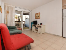 "Els Pins Eduardo", 3-Zimmer-Wohnung 46 m2 im 1. Stock. Objekt geeignet für 2 Erwachsene + 2 Kinder. Teilweise renoviert im Jahre 2017, zweckmässig und komfortabel eingerichtet: Wohn-/Esszimmer mit 1 Klappbett (80 cm, Länge 180 cm), Digital-TV und Ventilator. Ausgang zur Terrasse. 1 Zimmer, ohne Fenster mit 1 franz. Bett (150 cm, Länge 190 cm). 1 Zimmer, Fenster zum Hof, ohne Schrank mit 1 Bett (80 cm, Länge 180 cm). Offene Küche (2 Glaskeramikherd Platten, Toaster, Wasserkocher, Mikrowelle, elektrische Kaffeemaschine). Dusche/WC. Keine Heizmöglichkeit. Terrasse. Terrassenmöbel. Sicht auf das Meer und das Schwimmbad. Zur Verfügung: Waschmaschine, Bügeleisen, Kinderhochstuhl, Babybett bis 2 Jahre, Haartrockner. Internet (Wireless LAN, gratis). Parkplatz Nr. 25 (1 Auto) beim Haus. Bitte beachten: geeignet für Familien. Nichtraucher-Unterkunft. HUTT004210 Das Ferienobjekt verfügt über einen Personenaufzug. Überdies werden sie verwöhnt mit einem freien Blick auf das Meer. Es gibt ein Kinderbecken.- Ausstattung
