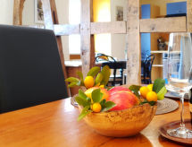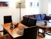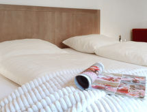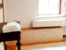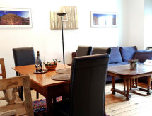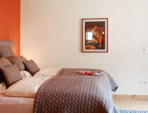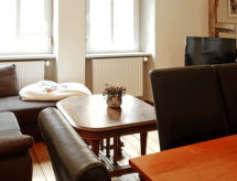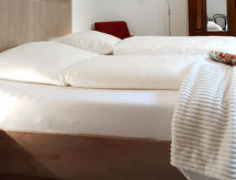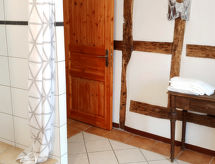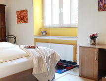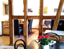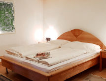 "Entenhaus II", 3-Zimmer-Reihenhaus 110 m2 auf 2 Stockwerken, im Erdgeschoss. Komfortabel eingerichtet: 1 Zimmer 12 m2 mit 1 Doppelbett (180 cm, Länge 200 cm), Sat-TV (Flachbildschirm). Obergeschoss: Wohn-/Esszimmer 35 m2 mit Sat-TV (Flachbildschirm), CD. 1 Zimmer 16 m2 mit 1 Doppelbett (180 cm, Länge 200 cm), Sat-TV (Flachbildschirm). Offene Küche (Backofen, Geschirrspüler, 4 Glaskeramikherd Platten, Toaster, Wasserkocher, Mikrowelle, elektrische Kaffeemaschine). Dusche/WC, Bad/Dusche/WC. Zur Verfügung: Haartrockner. Internet (Wireless LAN, gratis). Bitte beachten: Nichtraucher-Haus. Maximal 2 Haustiere/Hunde erlaubt. Rauchmelder. Eines der beiden Badezimmer (Dusche/WC) befindet sich im Zwischenstock. Hof (10 m2). Bei Reservierung der Zusatzbetten steht ein separates drittes Schlafzimmer (18 m2) innerhalb der Wohnung mit 1 Doppelbett (180 x 200 cm) zur Verfügung, dieses Zimmer grenzt an eine Scheune an (Fenster ohne direktes Sonnenlicht mit Blick in die Scheune). Auch ihr Hund ist hier ein gern gesehen Feriengast, schließlich gehört er zur Familie. Ein Ofen ist vorhanden.- Ausstattung