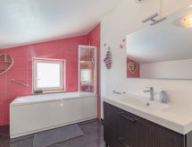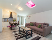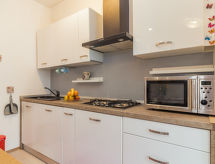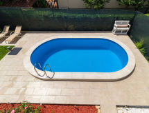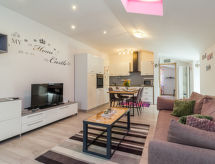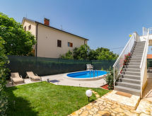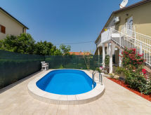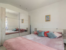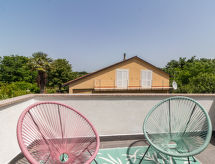 3-Zimmer-Wohnung 72 m2 im 1. Stock. Renoviert im Jahre 2021, schön eingerichtet: Wohn-/Esszimmer mit Sat-TV (Flachbildschirm), Klimaanlage. 1 Zimmer mit 1 franz. Bett (180 cm, Länge 200 cm). 1 abgeschrägtes Zimmer, Deckenhöhe 160 - 270 cm mit 2 Betten (90 cm, Länge 200 cm). Ausgang zum Balkon. Offene Küche (1 Kochplatte, Backofen, Geschirrspüler, 3 Flammen, Toaster, Wasserkocher, Mikrowelle, Tiefkühler, elektrische Kaffeemaschine). Bad/Bidet/WC. Warmluftheizung. Balkon 6 m2, Terrasse 10 m2 teilweise überdacht, Terrasse 10 m2. Terrassenmöbel, Gartengrill (mobil), Liegestühle (4). Sicht auf das Schwimmbad. Zur Verfügung: Waschmaschine, Kinderhochstuhl, Babybett. Internet (Wireless LAN, gratis). Bitte beachten: Wohnung auf Hofseite. Nichtraucher-Unterkunft. 1 Haustier/Hund erlaubt. Eigener Eingang. Badewanne im Haus. Der Genuss von Tabakwaren ist nicht gestattet. Nicht nur sind hier Haustiere erlaubt, sondern ihr Hund ist auch ein gern gesehener Feriengast. Die drückende Hitze kann Körper und Gemüt stark belasten. Deshalb sind die Räumlichkeiten mit Klimaanlagen ausgestattet. Ein privater Pool ist vorhanden.- Ausstattung