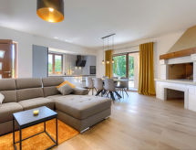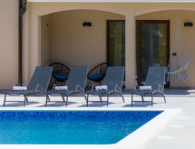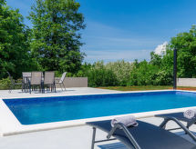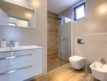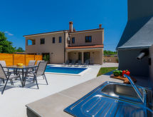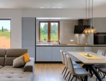 Zweifamilienhaus "Eroa", Baujahr 2022. Im Weiler Orbanići Gorenji, 2 km vom Zentrum von Žminj, ruhige, sonnige Lage, 25 km vom Meer, in einer Sackgasse. Zur Alleinbenutzung: Grundstück 500 m2, Schwimmbad eckig (32 m2, 150 cm tief, saisonale Verfügbarkeit: 01.Mai. - 30.Sep.) mit Innentreppe. Kinderbecken, Aussendusche, Grill. Im Hause: Internetzugang. Parkplatz beim Haus auf dem Grundstück. Einkaufsgeschäft 2 km, Restaurant 3 km, Kieselstrand 25 km. Wanderwege ab Haus 100 m, Radweg 150 m.Interior