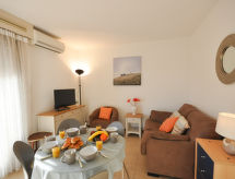 2-Zimmer-Wohnung 26 m2 im 1. Stock, Südlage. Zweckmässig und schön eingerichtet: Wohn-/Esszimmer mit 1 Diwanbett (120 cm, Länge 190 cm), TV (Flachbildschirm), Klimaanlage. Ausgang zur Terrasse. 1 Zimmer mit 1 franz. Bett (1 x 140 cm, Länge 190 cm). Offene Küche (Backofen, 4 Glaskeramikherd Platten, Toaster, Wasserkocher, elektrische Kaffeemaschine, Kombinationsmikrowelle). Dusche, sep. WC. E-Heizung, Boiler (150 Liter). Balkon 4 m2, Südlage. Balkonmöbel, Liegestühle (2). Sicht auf den Garten. Zur Verfügung: Waschmaschine, Fliegengitter. Internet (Wireless LAN, extra). Parkplatz Nr. 351. Bitte beachten: geeignet für Familien. TV nur FR. Rauchmelder. Objekt verfügt über einen Aufzug. Informieren Sie sich im über den vorhandenen TV Apparat. Ob lokale Neuigkeiten oder internationale Nachrichten, mit dem Fernsehen sind sie stehts gut informiert.- Charakteristik des Mietobjekts