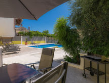Ližnjan 3 km von Medulin: Reihenhaus "Evelina", auf 2 Stockwerken. 200 m vom Zentrum von Ližnjan, sonnige Lage, 2 km vom Meer, 2 km vom Strand. Zur Alleinbenutzung: Grundstück 280 m2 (eingezäunt), Garten mit Rasen, Schwimmbad eckig (8 x 4 m, 150 cm tief, saisonale Verfügbarkeit: 25.Apr. - 26.Okt.). Terrasse (30 m2), Gartenmöbel. Im Hause: Internetzugang, Sprudelbad, Waschmaschine. Parkplatz (für 2 Autos) beim Haus auf dem Grundstück. Einkaufsgeschäft 200 m, Restaurant 300 m, Kieselstrand 2 km, Felsstrand 2 km. Surfschule 2.5 km, Reitstall 3 km, Sportzentrum 4.5 km, Wanderwege ab Haus 1 km, Radweg 1 km. Eine wunderschöne Umgebung für Ausritte und eine freundliche Atmosphäre erwarten Pferdesportfreunde. was will man als Ross oder Reiter mehr?Interior