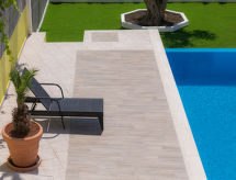 4-Zimmer-Reihenhaus 130 m2 auf 2 Stockwerken. Wohn-/Esszimmer mit Sat-TV (Flachbildschirm), Klimaanlage. 1 Zimmer mit 1 franz. Bett (160 cm, Länge 200 cm), Dusche/WC. Offene Küche (Backofen, 4 Glaskeramikherd Platten, Tiefkühler, elektrische Kaffeemaschine). Bad/WC. Obergeschoss: Eingang mit Klimaanlage. 1 Zimmer mit 1 Doppelbett (2 x 90 cm, Länge 200 cm). 1 Zimmer mit 1 franz. Bett (140 cm, Länge 200 cm). Ausgang zur Terrasse. Terrasse 70 m2. Terrassenmöbel, Gartengrill (mobil), Liegestühle. Zur Verfügung: Safe, Haartrockner. Internet (Wireless LAN, gratis). 1 kleines Haustier/Hund erlaubt. Mit eigenem Whirlpool.,Nutzen Sie den Whirlpool. Es gibt ein privater Pool.- Charakteristik des Mietobjekts