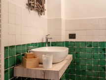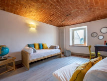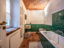 "Ex Hotel Italia", 2-Zimmer-Wohnung 130 m2 auf 2 Stockwerken. Renoviert, gemütlich eingerichtet: 1 Doppelzimmer mit Sat-TV. Ausgang zum Balkon. 1 Zimmer mit 2 Betten. Bad/Bidet/WC. Unteres Geschoss: Wohnküche (Backofen, 2 Flammen, Toaster, Wasserkocher, Mikrowelle, Tiefkühler, elektrische Kaffeemaschine). Dusche/Bidet/WC. G-Heizung. Heizung nur verfügbar von 15.10. bis 15.04. Zur Verfügung: Waschmaschine, Kinderhochstuhl, Babybett, Haartrockner. Internet (Wireless LAN, gratis). CIR:00126200003 Ein WLAN (Drahtloses lokales Netzwerk) ist verfügbar.- Charakteristik des Mietobjekts