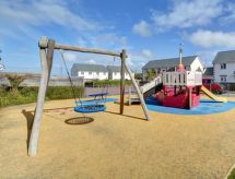 4-Zimmer-Haus auf 2 Stockwerken. Komfortabel und geschmackvoll eingerichtet: Wohnzimmer mit TV (Flachbildschirm), CD und DVD. Küche (4 Kochplatten, Backofen, Geschirrspüler, Mikrowelle, Tiefkühler) mit Esstisch. Sep. WC. Obergeschoss: 1 Doppelzimmer mit 1 Doppelbett, Dusche/WC und TV (Flachbildschirm), DVD. 1 Zimmer mit 2 Betten. 1 Zimmer mit 1 x 2 Etagenbetten. Bad/Dusche/WC. G-Heizung. Gartensitzplatz. Terrassenmöbel. Zur Verfügung: Waschmaschine, Wäschetrockner, Haartrockner. Internet (Wireless LAN, gratis). Parkplatz. Bitte beachten: Nichtraucher-Haus. Maximal 2 Haustiere/Hunde erlaubt. In dieser Unterkunft sind Haustier erlaubt, so fühlt sich auch ihr Vierbeiner pudelwohl. Ein eindrucksvoller Kinderspielplatz befindet sich ebenfalls auf dem Anwesen. Eine Veranda ist vorhanden. Ein Wäschetrockner ist verfügbar.- Ausstattung