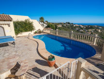 Grosses, schönes Haus "Feliz", auf 3 Stockwerken. Im Ortsteil Cumbre del Sol, 8 km vom Zentrum von Moraira, ruhige, sonnige Lage, 2.5 km vom Meer, 2.5 km vom Strand. Zur Alleinbenutzung: Grundstück 800 m2, gepflegter Garten, Schwimmbad nierenförmig, eingezäunt (4 x 8 m, 120 - 210 cm tief, saisonale Verfügbarkeit: 01.Jan. - 31.Dez.). Dusche/WC im Poolbereich, Poolhaus mit Kühlschrank und Kochherd, Terrasse, Gartenmöbel. Im Hause: Wireless LAN, Klimaanlage, Waschmaschine. Einzelgarage. Supermarkt 1 km, Restaurant 1 km, Bar 1 km, Sandstrand "Playa L'Ampolla" 8 km, Kieselstrand "Cala Moraig" 2.8 km. Der Besitzer akzeptiert keine Jugendgruppen.Interior