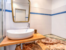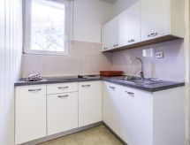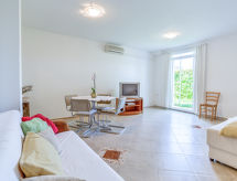 2-Zimmer-Wohnung 50 m2, im ebenerdigen Untergeschoss. Wohn-/Esszimmer 25 m2 mit 1 Doppeldiwanbett, Sat-TV und Klimaanlage. Ausgang zur Terrasse. 1 Zimmer mit 1 franz. Bett (160 cm, Länge 200 cm). Küche (2 Kochplatten, Tiefkühler). Dusche/WC. Klimaanlage (extra). Terrasse 30 m2. Terrassenmöbel. Es gibt ein Tischtennistisch.- Ausstattung