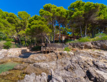 Costa de los Pinos 7 km von Son Servera: Grosse Villa "Finca L'Embat (DLP100)". Mietobjekt bestehend aus Haupt- und Nebengebäude, 1.2 km vom Zentrum von Costa de los Pinos, 6.5 km vom Zentrum von Cala Millor, 23 km vom Zentrum von Manacor, am Hang, im Villenviertel, direkt am Meer, direkter Zugang zum Strand. Zur Alleinbenutzung: Grundstück 6'500 m2, gepflegter Terrassengarten mit Rasen und Bäumen, Parkplatz (überdacht) auf dem Grundstück. Einkaufsgeschäft 1.2 km, Restaurant 1.2 km, Sandstrand 2 km, Felsstrand 50 m. Golfplatz 2 km. Bitte beachten: Fahrzeug empfohlen.Interior