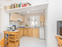 3-Zimmer-Wohnung 55 m2, im Erdgeschoss. Komfortabel eingerichtet: Wohn-/Esszimmer mit Esstisch, Sat-TV, Klimaanlage, Ventilator und Warmluftheizung. Ausgang zum Balkon. 1 Zimmer mit 1 franz. Bett (2 x 80 cm, Länge 190 cm). 1 Zimmer mit 2 Betten (80 cm, Länge 190 cm), Ventilator. Küche (4 Glaskeramikherd Platten, Toaster, Mikrowelle, Tiefkühler, elektrische Kaffeemaschine). Dusche/WC. Kleine Terrasse. Terrassenmöbel. Sicht auf das Schwimmbad, den Garten und den Kanal. Zur Verfügung: Waschmaschine, Bügeleisen, Babybett, Haartrockner. Internet (Wireless LAN, gratis). Bitte beachten: Nichtraucher-Unterkunft. TV nur FR. HUTG065297 Unabhängiger sind Sie mit der eigens vorhandenen Waschmaschine.- Ausstattung