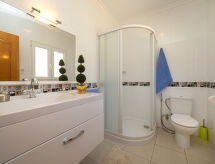 "Fleur", 7-Zimmer-Haus 224 m2 auf 2 Stockwerken. Hell, komfortabel und schön eingerichtet: Wohn-/Esszimmer 30 m2 mit Sat-TV, Digital-TV und Klimaanlage. Ausgang zur Terrasse. 1 Zimmer mit 1 franz. Bett (135 cm, Länge 190 cm), Dusche/WC, Hydromassage-Dusche und Klimaanlage. 2 Zimmer, jedes Zimmer mit 1 franz. Bett (150 cm, Länge 190 cm), Klimaanlage. Küche (Backofen, Geschirrspüler, 4 Glaskeramikherd Platten, Toaster, Wasserkocher, Mikrowelle, Tiefkühler, elektrische Kaffeemaschine). Dusche/WC. Heizung. Obergeschoss: (Aussentreppe) Wohn-/Esszimmer 25 m2 mit Sat-TV, Digital-TV und Klimaanlage. Ausgang zur Terrasse. 1 Zimmer mit 1 franz. Bett (135 cm, Länge 190 cm), Klimaanlage. Ausgang zur Terrasse. 1 Zimmer mit 1 Doppelbett (2 x 80 cm, Länge 190 cm), Klimaanlage. Ausgang zur Terrasse. Offene Küche (Backofen, 4 Glaskeramikherd Platten, Toaster, Wasserkocher, Mikrowelle, Tiefkühler, elektrische Kaffeemaschine). Dusche/WC. Heizung. Grosse Terrasse. Terrassenmöbel, Gartengrill, Liegestühle (10). Zur Verfügung: Waschmaschine, Wäschetrockner, Bügeleisen, Kinderhochstuhl, Babybett bis 2 Jahre, Haartrockner. Internet (Wireless LAN, gratis). Parkplatz beim Haus. R000000001 Mit eingezäuntem Grundstück. Es gibt ein überdachter Parkplatz. Ein privater Pool ist vorhanden. Unabhängiger sind Sie mit der eigens vorhandenen Waschmaschine. Das Haus ist auch mit einem Wäschetrockner ausgestattet.- Ausstattung