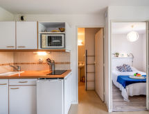 2-Zimmer-Wohnung 24 m2 im 1. Stock. Wohn-/Esszimmer mit TV (Flachbildschirm). Ausgang zum Balkon. 1 Zimmer mit 1 franz. Bett (140 cm, Länge 190 cm). Kochnische (Mini-Backofen, 2 Induktionskochplatten, Toaster, Wasserkocher, Mikrowelle, elektrische Kaffeemaschine). Dusche/WC. E-Heizung. Kleiner Balkon, Ostlage. Balkonmöbel. Zur Verfügung: Internet (Wireless LAN, extra). Bitte beachten: Nichtraucher-Haus. Rauchmelder. Es hat ein Internetanschluss.- Charakteristik des Mietobjekts