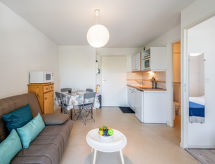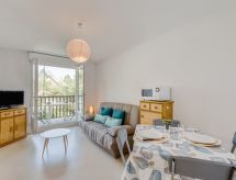 Residenz "Fleur Marine". Im Ort, 1 km vom Zentrum von Cabourg, 300 m vom Meer, 300 m vom Strand, direkter Zugang zum Strand. Parkplatz (beschränkte Anzahl). Einkaufsgeschäft 1 km, Supermarkt 900 m, Restaurant 1 km, Thermalbad "Thalazur" 500 m. Golfplatz (9 Loch) 1.2 km, Sportzentrum 500 m. Bitte beachten: Das Foto ist nur ein Hausbeispiel. Bestehend aus 2-geschossigen Doppelhäusern und 3-geschossigen Gebäuden im normannischen Stil.Interior