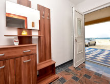 3-Zimmer-Wohnung 80 m2, im Erdgeschoss, Nordwestlage. Wohn-/Esszimmer 40 m2 mit Sat-TV (Flachbildschirm), Klimaanlage. Ausgang zur Terrasse. 1 Zimmer mit 1 Doppelbett (2 x 90 cm, Länge 200 cm). 1 Zimmer mit 1 Bett (120 cm, Länge 200 cm), 1 franz. Bett (140 cm, Länge 200 cm). Offene Küche (Backofen, Geschirrspüler, 4 Glaskeramikherd Platten, Tiefkühler, elektrische Kaffeemaschine). Dusche/WC. Terrasse 20 m2, überdacht. Terrassenmöbel. Sicht auf das Meer. Zur Verfügung: Haartrockner. Internet (Wireless LAN, gratis). Ist ein regelmäßiges Duschritual fest im Tagesablauf verankert? Das schaffen wir, denn eine Dusche ist vorhanden. Bietet wunderschöne Aussicht aufs Meer. Sollte das Wetter einmal nicht mitspielen, ist auch ein Fernseher vorhanden. Es hat ein Ofen.- Ausstattung