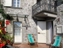 "Flora", 3-Zimmer-Haus 90 m2 auf 2 Stockwerken. Schön und rustikal eingerichtet: Wohn-/Esszimmer mit Esstisch und Sat-TV. Offene Küche (Gasherd, 5 Flammen, Toaster, Wasserkocher, Mikrowelle, elektrische Kaffeemaschine) mit offenem Kamin (nur Deko). Dusche/WC. Obergeschoss: 1 Zimmer mit 1 Doppelbett. Ausgang zum Balkon. 1 Zimmer mit 1 franz. Bett (140 cm). Ausgang zum Balkon. Dusche/WC. G-Heizung. Balkon, Terrasse überdacht. Terrassenmöbel, Gartengrill (mobil), Liegestühle (6). Herrliche Panoramasicht auf die Berge und das Tal. Zur Verfügung: Waschmaschine, Haartrockner. Bitte beachten: Nichtraucher-Unterkunft. 1 Haustier/Hund erlaubt. Im Idyllischen Garten geniessen Sie Erholung als ein Naturerlebnis. Zur Verfügung steht ein Mikrowellengerät.- Ausstattung