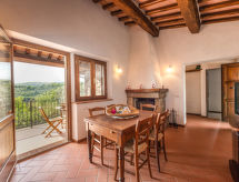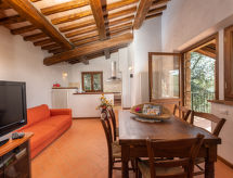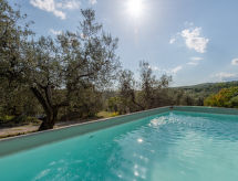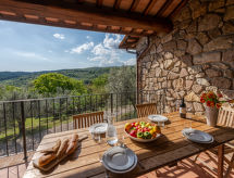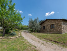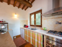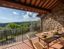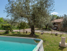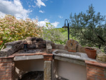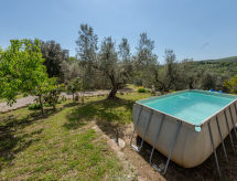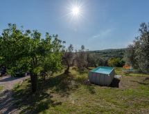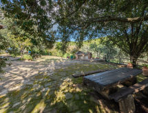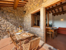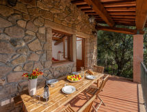 3-Zimmer-Haus 80 m2, im Erdgeschoss. Rustikal und gemütlich eingerichtet: Wohn-/Esszimmer mit 1 Doppeldiwanbett, offenem Kamin, Esstisch, Sat-TV und Internationale TV-Sender. Ausgang zum Garten, zum Balkon. 2 Doppelzimmer. Offene Küche (Backofen, Geschirrspüler, 4 Flammen, Toaster, Wasserkocher, elektrische Kaffeemaschine). Ausgang zum Garten, zum Balkon. 2 Duschen/Bidet/WC. Holzheizung. Natursteinböden. Terrasse überdacht, Gartensitzplatz. Terrassenmöbel, Balkonmöbel, Gartengrill, Liegestühle. Sehr schöne Panoramasicht auf die Landschaft. Zur Verfügung: Waschmaschine, Fliegengitter, Kinderhochstuhl, Babybett bis 2 Jahre, Haartrockner. Internet (Wireless LAN, gratis). Bitte beachten: Nichtraucher-Unterkunft. 1 Haustier/Hund erlaubt. Eigener Eingang. Es gibt eine Veranda. Ein Geschirrspüler ist vorhanden. Das Haus ist auch mit einer Feuerstelle ausgestattet. Es hat ein privater Pool. Ein Ofen ist verfügbar.- Ausstattung