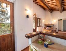 Gemütlicher, rustikaler Landsitz "Fonte al Tesoro", umgeben von Bäumen und Feldern. 2.7 km vom Zentrum von Roccatederighi, alleinstehende, ruhige, sonnige Lage auf einem Hügel, 34 km vom Meer, im Grünen. Zur Alleinbenutzung: Grundstück 2 ha mit Rasen und Bäumen, wunderschöner Garten zum Entspannen, Aufstellpool (4 x 2 m, 130 cm tief, saisonale Verfügbarkeit: 15.Mai. - 30.Sep.). Aussendusche, Sitzplatz, Terrasse, Gartenmöbel, Grill, Poolpflege durch den Besitzer/Gärtner. Zufahrt bis zum Haus (300 m Naturweg). Parkplatz auf dem Grundstück. Einkaufsgeschäft 2.5 km, Lebensmittelgeschäft 2.5 km, Supermarkt 2.7 km, Restaurant 2.8 km, Bar 2.5 km, Fahrradverleih 2.5 km, Sandstrand "Follonica" 35 km. Sporthafen 35 km, Golfplatz (18 Loch) 28 km, Wanderwege ab Haus 1.7 km. Nahe gelegene Sehenswürdigkeiten: Montemassi 7 km, Roccastrada 14 km, Massa Marittima 29 km, Castiglione della Pescaia 45 km, Siena 66 km, San Galgano Abbey 28 km. Wandergebiete: Riserva Naturale Farma 24 km, Mountain-bike 2 km. Bitte beachten: Fahrzeug empfohlen. Babyausstattung auf Anfrage (inkl.). Der Besitzer hat ein kleines typisches Restaurant in der Altstadt von Roccatederighi.Interior