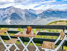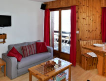 "Foret E3", 2-Zimmer-Wohnung 34 m2 im 3. Stock. Objekt geeignet für 2 Erwachsene + 1 Kind. Zweckmässig eingerichtet: Eingang mit 1 Bett (80 cm, Länge 180 cm). Wohn-/Esszimmer mit Schwedenofen und Kabel-TV. Ausgang zum Balkon, Richtung Norden. 1 Zimmer mit 1 franz. Bett (1 x 160 cm, Länge 200 cm). Ausgang zum Balkon, Richtung Norden. Offene Küche (4 Kochplatten, Backofen, Mikrowelle, Fondue Set (Chinoise, Käse)). Bad/WC. Balkonmöbel. Sehr schöne Sicht auf die Berge und das Tal. Zur Verfügung: Haartrockner. Internet (Wireless LAN, gratis). Parkplatz Nr. E3. Bitte beachten: Nichtraucher-Unterkunft. 1 Haustier/Hund erlaubt. Residenz. Das Haus ist auch mit einem Babybett ausgestattet. Eine Feuerstelle ist vorhanden. Ein Wäschetrockner ist verfügbar.- Charakteristik des Mietobjekts