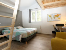 "L'Escoundoun (SEL150)", 2-Zimmer-Doppelhaushälfte 40 m2. Modern eingerichtet: Wohn-/Schlafzimmer mit 1 Doppeldiwanbett, Schwedenofen, Esstisch und TV. 1 Zimmer, auf 2 Ebenen mit 1 franz. Bett und 1 Schlafmöglichkeit. Offene Küche (Backofen, 2 Glaskeramikherd Platten, Toaster, Wasserkocher, Mikrowelle, Tiefkühler, elektrische Kaffeemaschine). Dusche/WC. E-Heizung. Terrasse 12 m2. Terrassenmöbel, Elektrogrill, Liegestühle (4). Zur Verfügung: Waschmaschine, Fliegengitter. Internet (Wireless LAN, gratis). Bitte beachten: Nichtraucher-Haus. Rauchmelder. Flexibilität bei der Bettenaufteilung: Es stehen mehr Schlafmöglichkeiten zur Verfügung als die maximal zugelassene Personenzahl, diese darf dennoch nicht überschritten werden. Es hat ein drahtloses lokales Netzwerk (WLAN).- Ausstattung