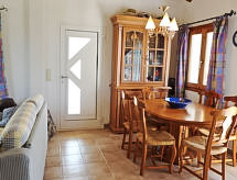 "Gabi", 4-Zimmer-Haus 131 m2. Komfortabel eingerichtet: Wohn-/Esszimmer mit Sat-TV und Digital-TV (Flachbildschirm), DVD. Ausgang zur Terrasse, Pergola, zum Schwimmbad. 1 Doppelzimmer mit 2 Betten (90 cm, Länge 190 cm), Ventilator. 1 Doppelzimmer mit 1 Ausziehbett (2 Pers.), Ventilator. 1 Doppelzimmer mit 2 Betten (90 cm, Länge 190 cm), Bad/WC, Doppelwaschbecken und Ventilator. Küche (Backofen, X Glaskeramikherd Platten, Mikrowelle, Tiefkühler). Dusche/WC. Keine Heizmöglichkeit. Kleine Terrasse 12 m2, überdacht Terrasse 20 m2. Terrassenmöbel, Gartengrill, Liegestühle (3). Herrliche Panoramasicht auf das Meer, die Berge und die Landschaft. Zur Verfügung: Waschmaschine. Internet (Wireless LAN, gratis). Parkplatz. AT-439202-A Überdies werden sie verwöhnt mit einem freien Blick auf das Meer. Das Haus ist auch mit einem Pool ausgestattet. Ein privater Pool ist vorhanden. Ein DVD Spieler ist vorhanden. Es hat ein Ofen.- Aktivitäten in der Nähe