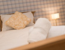 3-Zimmer-Landhaus auf 2 Stockwerken. Geräumig und hell, komfortabel und geschmackvoll eingerichtet: offenes Wohnzimmer mit TV, Flachbildschirm und DVD. Offene Küche (4 Kochplatten, Backofen, Mikrowelle, Tiefkühler) mit Esstisch. Obergeschoss: 1 Doppelzimmer mit 1 Doppelbett. 1 Zimmer mit 1 Ausziehbett und Dusche/WC. Bad/Dusche/WC. Heizung. Terrassenmöbel. Schöne Sicht auf das Städtchen. Zur Verfügung: Waschmaschine, Wäschetrockner. Internet (Wireless LAN, gratis). Bitte beachten: Nichtraucher-Haus. Ein Wäschetrockner ist verfügbar. Das Haus ist auch mit einem DVD Spieler ausgestattet.- Ausstattung