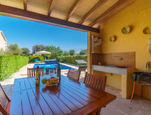 "Galeri Nou (fEL108)", 4-Zimmer-Haus 130 m2. Zweckmässig eingerichtet: Wohn-/Esszimmer mit Esstisch, Sat-TV, Digital-TV und Klimaanlage. Ausgang zum Garten, zur Terrasse. 1 Zimmer mit 2 Betten und Klimaanlage. 1 Zimmer mit 1 franz. Bett (160 cm), Klimaanlage. 1 Zimmer mit 2 Betten. Küche (Backofen, Geschirrspüler, 3 Glaskeramikherd Platten, Wasserkocher, Mikrowelle, Tiefkühler, elektrische Kaffeemaschine) mit offenem Kamin (nur Deko). 2 Duschen/WC. Keine Heizmöglichkeit. Terrasse 10 m2, überdacht. Terrassenmöbel, Gartengrill, Liegestühle (6). Zur Verfügung: Waschmaschine, Safe, Bügeleisen, Kinderhochstuhl, Babybett, Haartrockner. Internet (Wireless LAN, gratis). Bitte beachten: Nichtraucher-Haus. Maximal 1 Haustier/Hund erlaubt. ETV1208 Das Grundstück ist komplett eingezäunt. Die drückende Hitze kann Körper und Gemüt stark belasten. Deshalb sind die Räumlichkeiten mit Klimaanlagen ausgestattet. Geeignet für ein Barbecue. Ein Babybett ist vorhanden. Ein privater Pool ist verfügbar. Ein drahtloses lokales Netzwerk (WLAN) ist vorhanden. Es hat ein Ofen.- Ausstattung