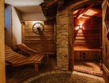 11-Zimmer-Wohnung 210 m2 auf 2 Stockwerken. Hell, gemütlich und mit viel Holz eingerichtet: Obergeschoss: 1 Zimmer mit 1 x 2 Etagenbetten (80 cm), 1 Doppelbett und Dusche/WC. Ausgang zum Balkon. 1 Doppelzimmer mit Dusche/WC. Ausgang zum Balkon. 1 Zimmer mit 1 Bett (80 cm), 1 Doppelbett und Dusche/WC. Ausgang zum Balkon. 2 Zimmer, jedes Zimmer mit 2 Betten (80 cm), Dusche/WC. 1 Zimmer mit 1 Bett (80 cm), Dusche/WC. Esszimmer mit Esstisch, TV und Kachelofen. Ausgang zum Balkon. Kleine, offene Küche (Backofen, Geschirrspüler, 4 Glaskeramikherd Platten, Mikrowelle, Tiefkühler, elektrische Kaffeemaschine). Ausgang zum Balkon. 2. Obergeschoss: 1 abgeschrägtes Doppelzimmer mit Dusche/WC. Ausgang zum Balkon. 1 abgeschrägtes Zimmer mit 1 x 2 Etagenbetten (80 cm), 1 Doppelbett und Dusche/WC. Ausgang zum Balkon. 1 abgeschrägtes Zimmer mit 2 Betten (80 cm), Dusche/WC. 1 abgeschrägtes Zimmer mit 1 Bett (140 cm), Dusche/WC. Dusche/WC. G-Heizung. 4 Balkone. Balkonmöbel. Schöne Sicht auf die Berge. Zur Verfügung: Waschmaschine, Wäschetrockner, Safe, Babybett. Internet (Wireless LAN). Bitte beachten: Nichtraucher-Unterkunft. Maximal 1 Haustier/Hund erlaubt. Residenz. Lust im Urlaub nicht immer selber zu kochen? Gönnen Sie sich einen Besuch im angeschlossenen Restaurant. Bequem mit dem Lift bis vor die Haustür. Es gibt ein Geschirrspüler. Bei der im Haus befindlichen Sauna kommt Ihr Stoffwechsel bei der Hitze auf Trab. Es hat ein Internetanschluss. Ein Wäschetrockner ist verfügbar.- Charakteristik des Mietobjekts