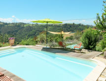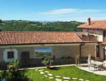 Landhaus "Casa d'Oro", 650 m.ü.M., umgeben von Wiesen, Feldern und Weinbergen. 4 Wohnungen im Ferienhaus. 3 km vom Zentrum von Murazzano, 10 km vom Zentrum von Dogliani, 20 km vom Zentrum von Barolo, alleinstehende Lage am Hang, 56 km vom Meer. Zur Mitbenutzung: Grundstück 15'000 m2, Terrassengarten (nicht eingezäunt) mit Rasen und Pflanzen, Naturgarten, Schwimmbad (8 x 4 m, 140 cm tief, saisonale Verfügbarkeit: 20.Mai. - 10.Sep.). Aussendusche, Terrasse, Gartenmöbel, Kinderspielplatz (Schaukel), begrünter Innenhof Poolpflege durch den Besitzer/Gärtner. In der Anlage: Aufenthaltsraum mit TV, Tischfussball. Parkplatz beim Haus auf dem Grundstück. Einkaufsgeschäft 3 km, Supermarkt 10 km, Bahnstation "Bra" 34 km. Golfplatz 20 km. Bitte beachten: Der Besitzer wohnt auf dem gleichen Grundstück. Das perfekte Ziel für einen Golfurlaub. Murazzano bietet beste Bedingungen für den Golfsport. Auf Plätzen, wo Greenkeeper die satten Grüns und die tadellosen Fairways instandhalten.Interior