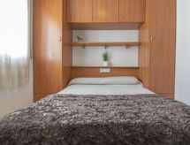 "Gavina", 4-Zimmer-Haus 64 m2. Objekt geeignet für 4 Erwachsene + 2 Kinder. Zweckmässig und komfortabel eingerichtet: Wohn-/Esszimmer mit Sat-TV, Digital-TV und Klimaanlage. Ausgang zur Terrasse. 1 Zimmer mit 1 franz. Bett (135 cm, Länge 180 cm). 2 Zimmer, jedes Zimmer mit 2 Betten (90 cm, Länge 190 cm). Offene Küche (4 Kochplatten, Backofen, Toaster, Wasserkocher, Mikrowelle, elektrische Kaffeemaschine). 2 Duschen/WC. Keine Heizmöglichkeit. Gartensitzplatz. Terrassenmöbel, Gartengrill. Zur Verfügung: Waschmaschine, Bügeleisen, Haartrockner. Internet (Wireless LAN, gratis). Bitte beachten: geeignet für Familien. Nichtraucher-Haus. HUTT006268 Damit es auch im Sommer angenehm kühl bleibt, verfügt dieses Ferienobjekt über eine Klimaanlage. Eine Terrasse ist vorhanden. Eine Veranda ist vorhanden. Ein Internetanschluss ist verfügbar. Ein Mikrowellenofen steht zur Verfügung.- Ausstattung