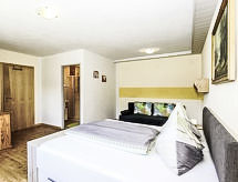 4-Zimmer-Wohnung 70 m2 im 1. Stock. Geräumig und hell, komfortabel und gemütlich eingerichtet: Eingang. 1 Doppelzimmer mit Sat-TV (Flachbildschirm). 1 grosses Zimmer mit 1 Doppeldiwanbett, 1 Doppelbett und Dusche/WC. 1 Zimmer mit 2 Betten. Grosse Wohnküche (4 Kochplatten, Backofen, Geschirrspüler, Mikrowelle) mit Esstisch und Sat-TV (Flachbildschirm). Ausgang zum Garten, zur Terrasse. Dusche, sep. WC. Grosse Terrasse 25 m2, Südlage und Ostlage, grosser Garten 55 m2. Terrassenmöbel, Gartengrill. Herrliche Panoramasicht auf die Berge, die Landschaft und die Ortschaft. Zur Verfügung: Babybett, Haartrockner. Internet (Wireless LAN). Bitte beachten: geeignet für Familien. Nichtraucher-Unterkunft. 1 Haustier/Hund erlaubt. Eigener Eingang. Haustier darf nur ein Hund sein, keine anderen Tiere erlaubt. Aufgrund der Hanglage des Hauses befindet sich der Hauseingang im dritten Stock (29 Stufen). Geeignet für ein Barbecue. Ein überdachter Parkplatz ist verfügbar. Das Haus ist auch mit einem Ofen ausgestattet.- Ausstattung